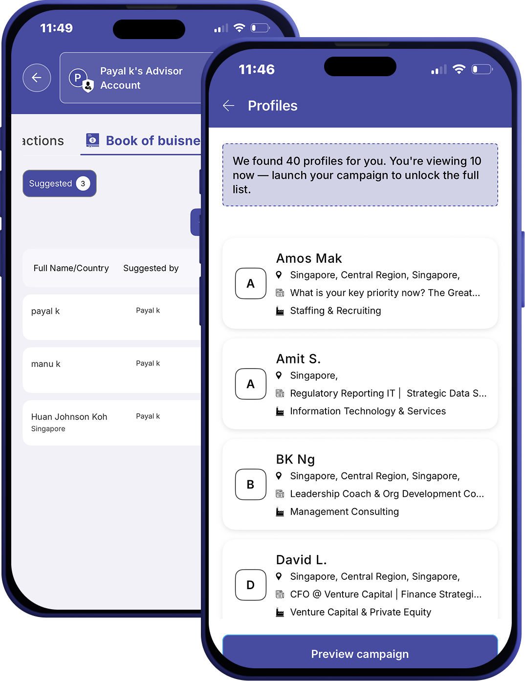Publish a personalised campaign page — just like top insurance or wealth advisors — but instead of selling policies, you help entrepreneurs build real companies.