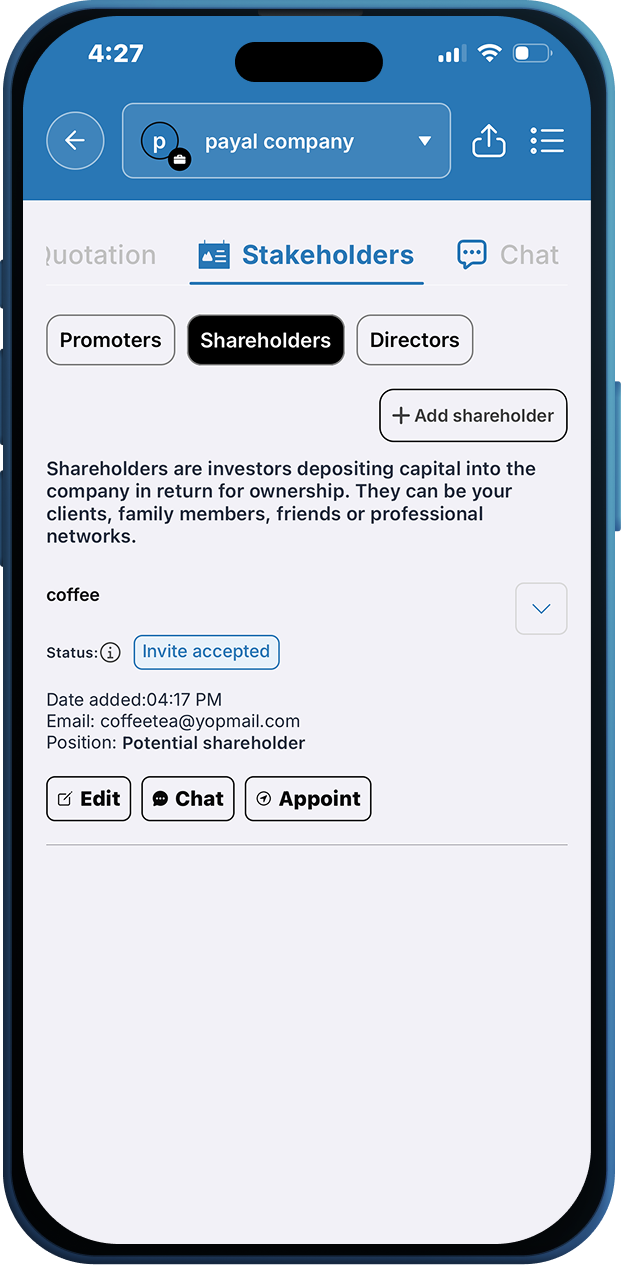 Companies don't sit dormant — they issue shares, receive payments, and onboard stakeholders using the sandbox model.