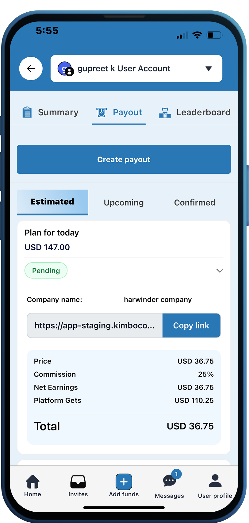 Campaign tracking and payout dashboard